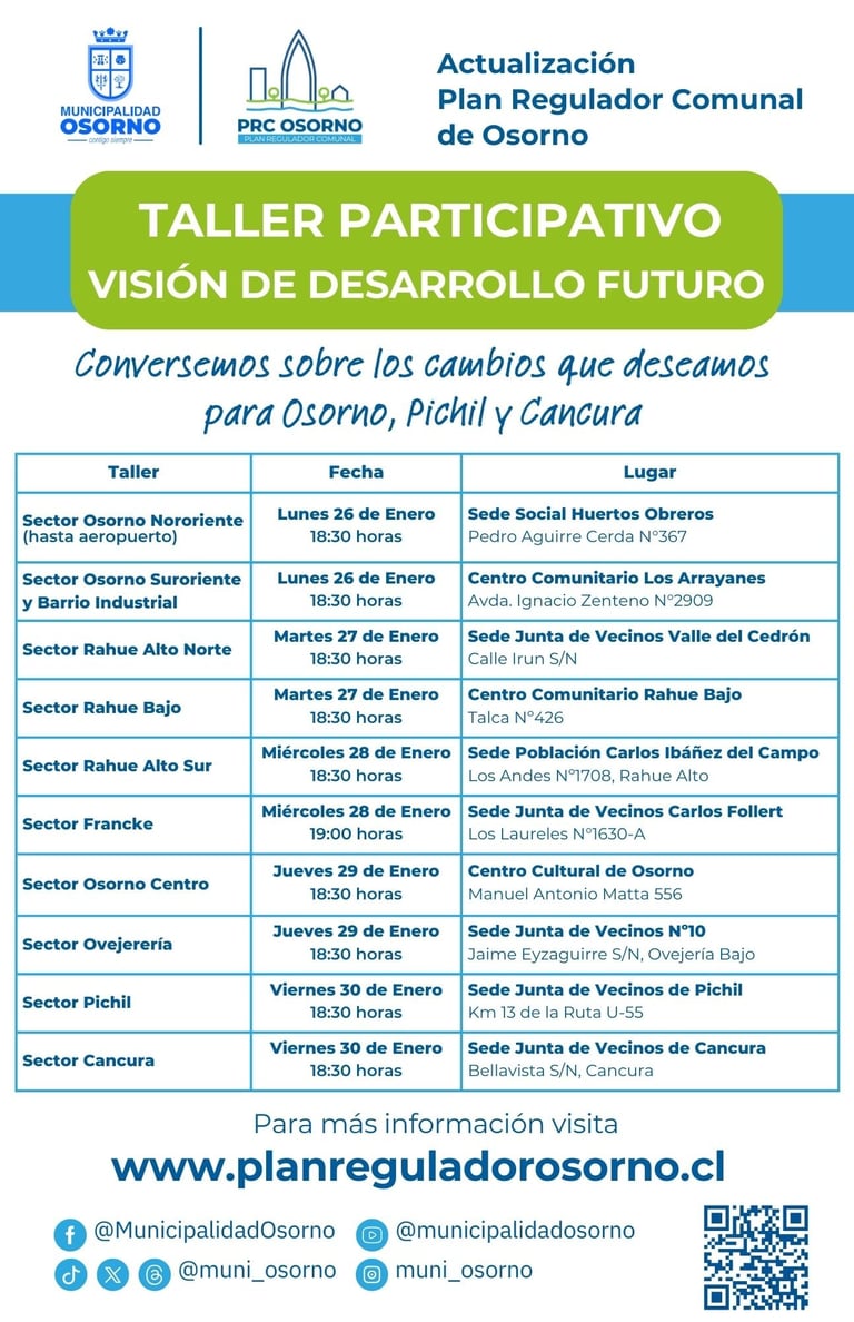 Estamos aquí para atender sus consultas sobre la actualización del Plan Regulador Comunal de Osorno.