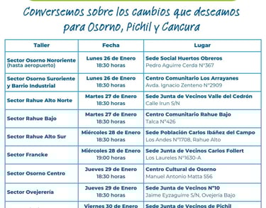 Los invitamos a participar en la siguiente ronda de participación ciudadana para conversar de como queremos que sea la ciudad de Osorno, Pichil y Cancura en 20 años en el futuro